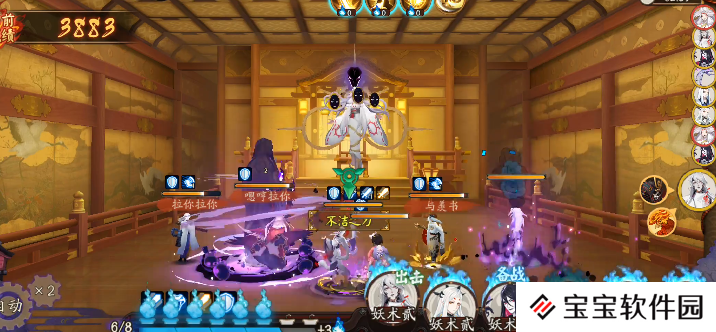 双招财妖琴师用于外加神乐疾风。在开场后所有能够拉条的式神全部开场拉主输出八岐大蛇,全部变蛇后挂机输出即可。