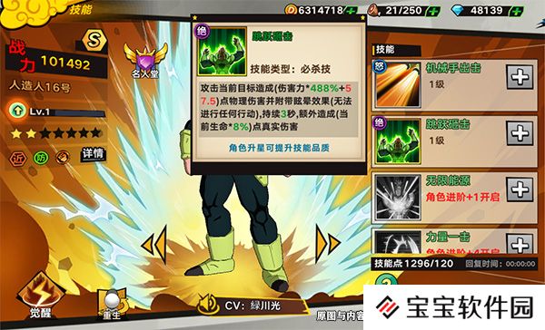 当玩家让16号觉醒后,他的辅助能力将更加强大,不仅能降低敌人的怒气回复能力,延后敌方的爆发点,更能与幼年悟饭配合,瞬间打出超高输出,这个效果完全对应了动画中的剧情,让人不禁回忆起悟饭变身超2的伤感剧情。