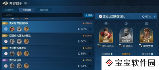 在搭配方面,比较多的选择是相对体系独立的坦克,比如给大卫王,其自身自带技能坦度很高,泛用性高;织田信长,其削弱流叠加后,坦度不差,搭配输出也很合适。