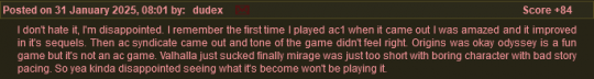 当然,这款游戏本身极具争议性,因此提前泄露的艺术集也自然引发了“绅士”们的争论。目前艺术集的评价褒贬不一,一些绅士表示就算游戏本身有问题艺术也还是优秀的,但另外一些则很不满意,一位日本绅士甚至表示他视游戏和上传艺术集的行为是对日本文化的一种侮辱。大多数对游戏的批评迎来的都是点踩,只有一位高赞评论表示,自己并不“恨”这部游戏,只是对于它感到非常失望,因为《刺客信条》系列曾经的辉煌似乎在《黑旗》之后已经一去不复返了,《影》似乎也将会是如此。