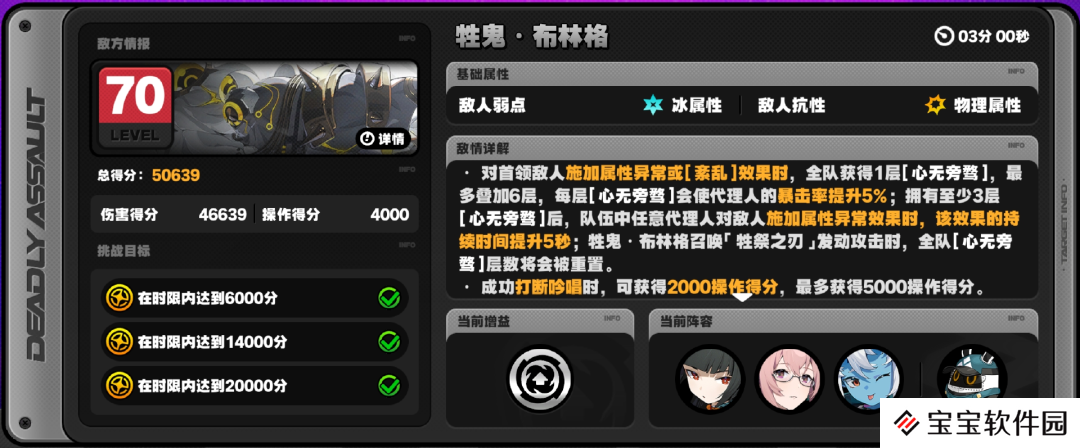 操作得分在于打断吟唱,也就是打空布林格异化形态时的血条,练度正常基本都能轻松打断,练度偏低的话可以提前攒技能爆发,该BOSS攻击欲望不强,基本是纯粹的伤害检测器。
