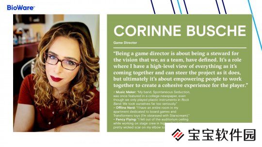 在发给Eurogamer的声明中,Corinne表示在获得一个制作一款她“无法拒绝”的全新 RPG游戏的机会后,她已离开BioWare前往其他地方担任新职位。
