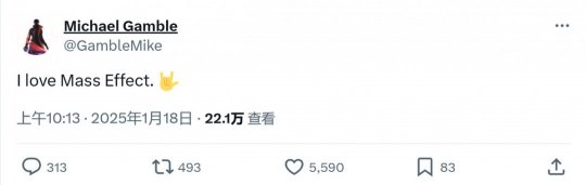 随后,《质量效应》制作人Mike Gamble也发布推文“我爱《质量效应》”,疑似在侧面回应BioWare没有被关闭的传闻,还在继续开发《质量效应5》。