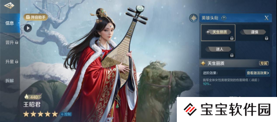天生丽质:我军全体女性英雄受到的伤害降低(战前)5%(进阶效果:我军全体女性英雄受到的伤害降低(战前)10%)