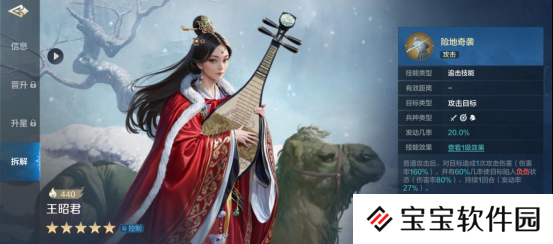 王昭君率领的兵种类型是远程,攻击距离为3,定位是控制。面板数值中下,初始智力为90,在五星英雄中不算高。