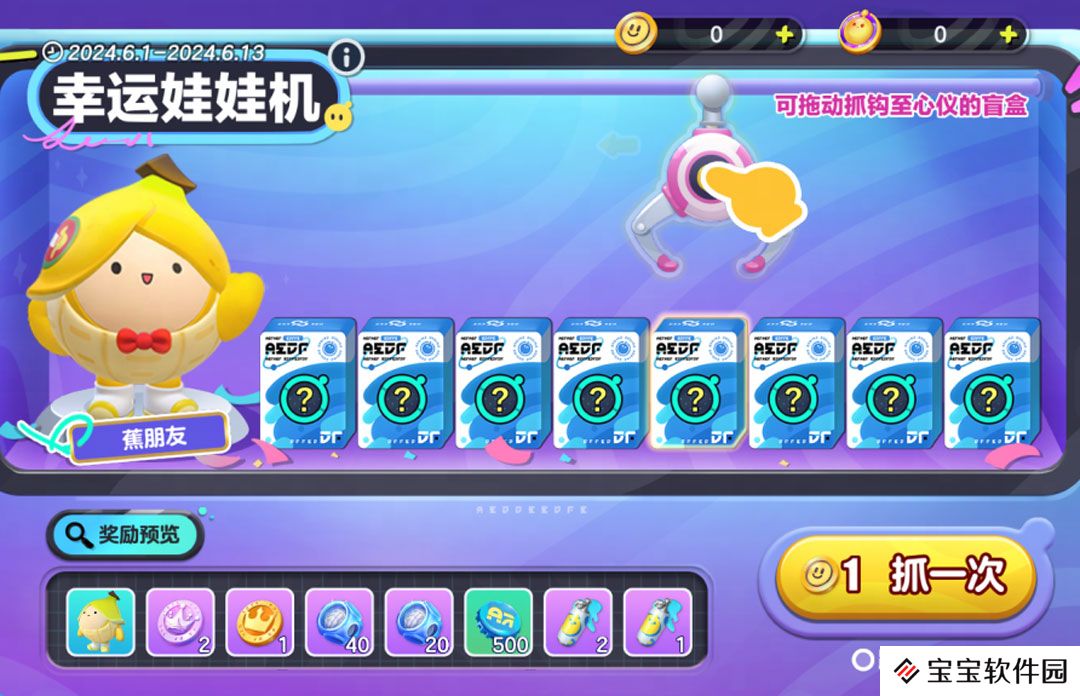 美好的童心旅程,从“蕉”个默契的新朋友开始!6月1日至6月13日,【幸运娃娃机】限时开启,8次内必定获取全新外观“蕉朋友”!